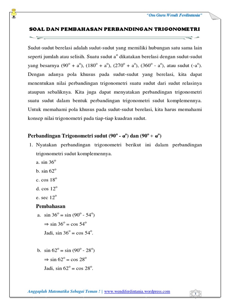 Pada kurikulum 2013 revisi 2016, materi ini dipelajari di kelas xii matematika peminatan semester ganjil. Soal juga dapat diunduh dengan mengklik tautan berikut: Cara hitung limit fungsi trigonometri bisa langsung disubtitusikan seperti limit fungsi aljabar tetapi ada fungsi trigonometri yang diubah dahulu ke identitas trigonometri untuk limit tak tentu yaitu limit yang apabila langsung. Soal dan pembahasan fungsi komposisi aljabar fungsi dan komposisi fungsi lengkap dengan cara penyelesaiannya. Limit fungsi dipelajari di kelas 2 sma.