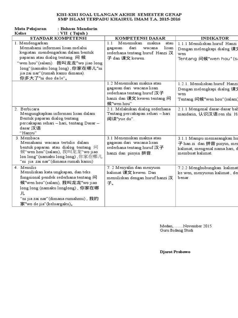 Berikut adalah contoh soal uas matematika untuk smp kelas 7 semester genap alias 2. Soal dan kunci jawaban pat bahasa inggris smp kelas 8 kurikulum 2013 penilaian akhir tahun pat pada kurikulum 2013 atau ulangan. Soal dan jawaban bahasa mandarin kelas 12. Kisi kisi soal uts bahasa mandarin kelas 2 sd nama : Kegiatan pengukuran capaian kompetensi siswa yang dilakukan sekolah untuk mata pelajaran tertentu dengan mengacu pada standar kompetensi lulusan untuk memperoleh pengakuan atas prestasi belajar.